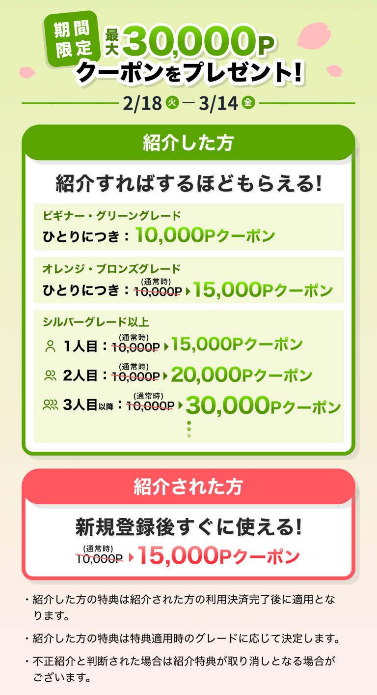 お得なこの機会にぜひご友人様をご紹介ください。